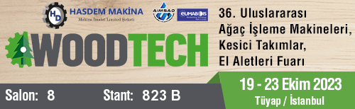 Woodtech Fuarı 36.Uluslararası Ağaç İşleme Makineleri, Kesici Takımlar, El Aletleri  Fuarı 19-23 Ekim 2023'de Tüyap/İstanbul'da